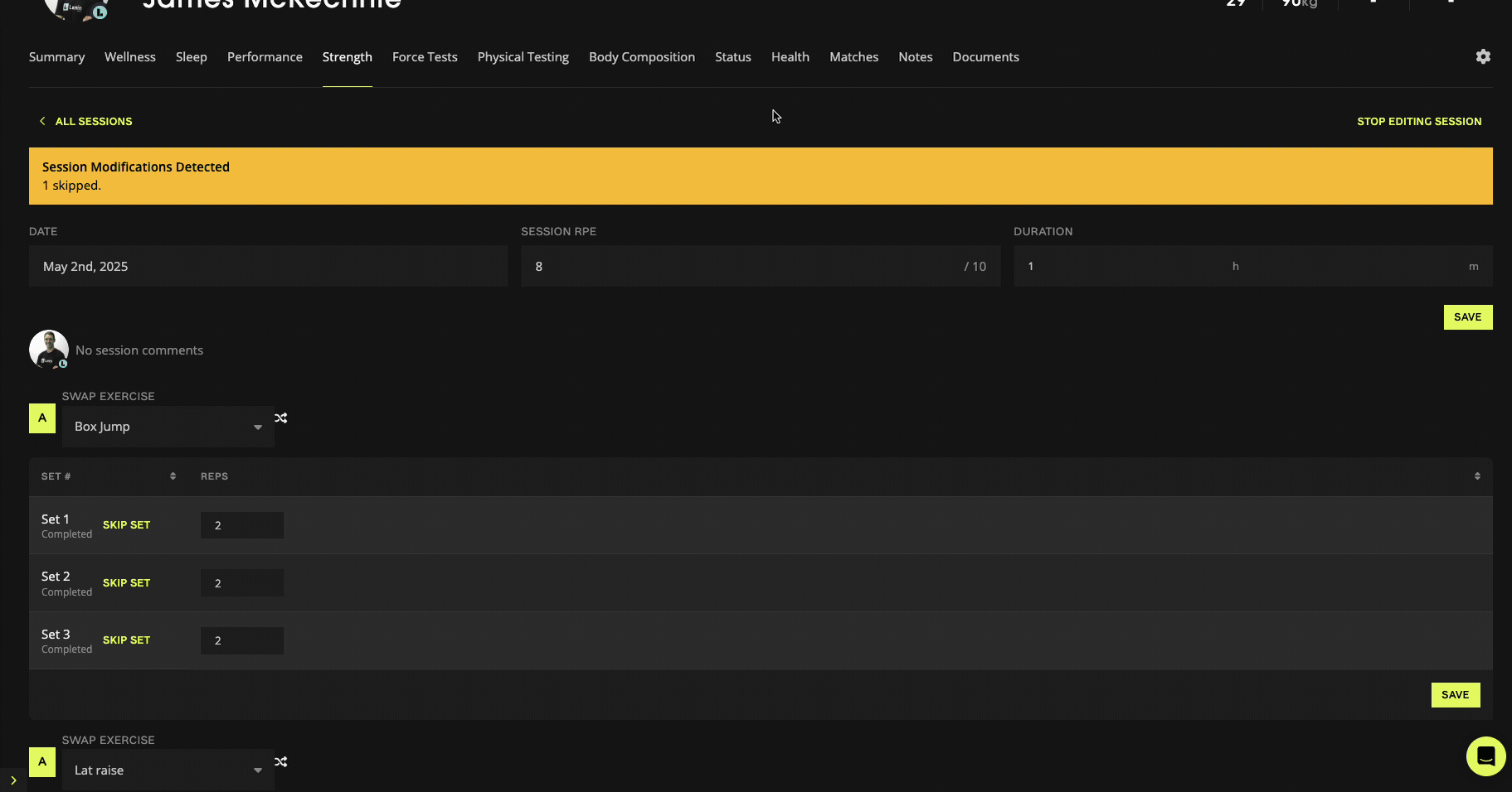 Athletes can now leave session notes, RPE and training duration in the session completion screen - Strength