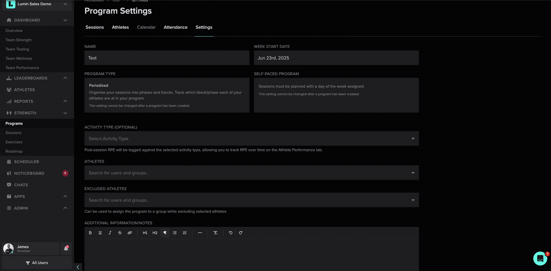 Following lots of customer feedback, you can now toggle-on 'Session Notes' in the View tab in the strength programmer to see what notes you've left for your athletes.