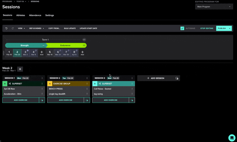 Phase and Block Planning is now incorporated within the Session Planner. This allows you to see both the week and session you’re working on within the context of the larger program plan. Coaches can see an annual and daily view on one screen. It also allows you to see where athletes are in respect to their sessions.